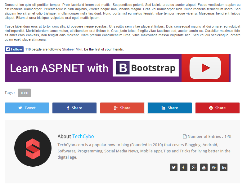 In the above screenshot you can see all the share buttons after the post body, so we want to add our WhatsApp share button here. Each button have a text “share” , so search for this text in our template code.