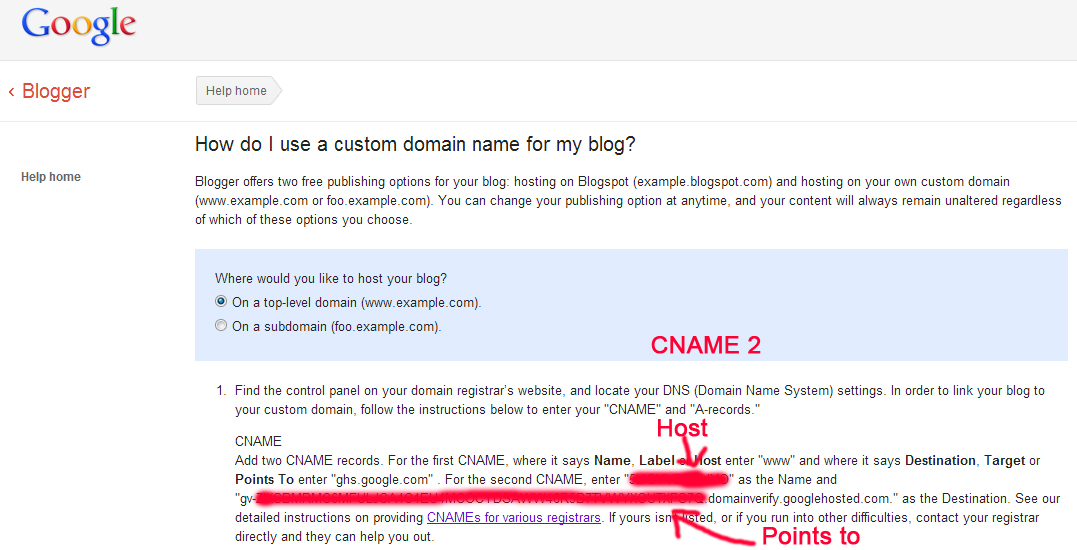 Step 12 : In this way you need to create another CNAME with parameters provided in Blogger Help (Step 6) , in this page you will see another CNAME informations,
