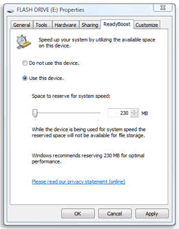 Step 3 : Click the “ReadyBoost” tab on the right side of the window. Select “Use this device” and select the amount of space on the pen drive you want to allocate to the computer memory.
