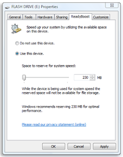Windows Ready Boost can use storage space on some removable media devices, such as USB flash drives, to speed up your computer. When you insert a device with this capability, the Auto Play dialog will offer you the option to speed up your system using Windows ReadyBoost. If you select this option, you can then choose how much memory to use for this purpose. However, there are some situations where you may not be able to use all of the memory on your storage device to speed up your computer.