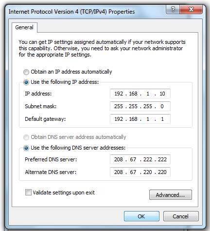 Alternate DNS server 208.67.220.220